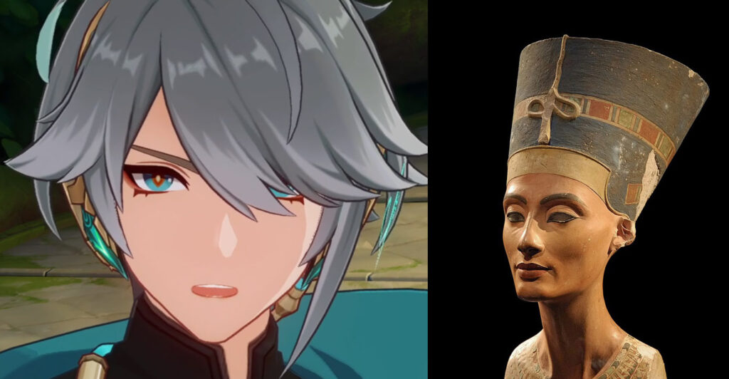 アルハイゼンの眼もとには化粧が施されていますが、実は現在に伝わるアイライナー(目元の化粧品)の歴史は古代エジプトまで遡れます。