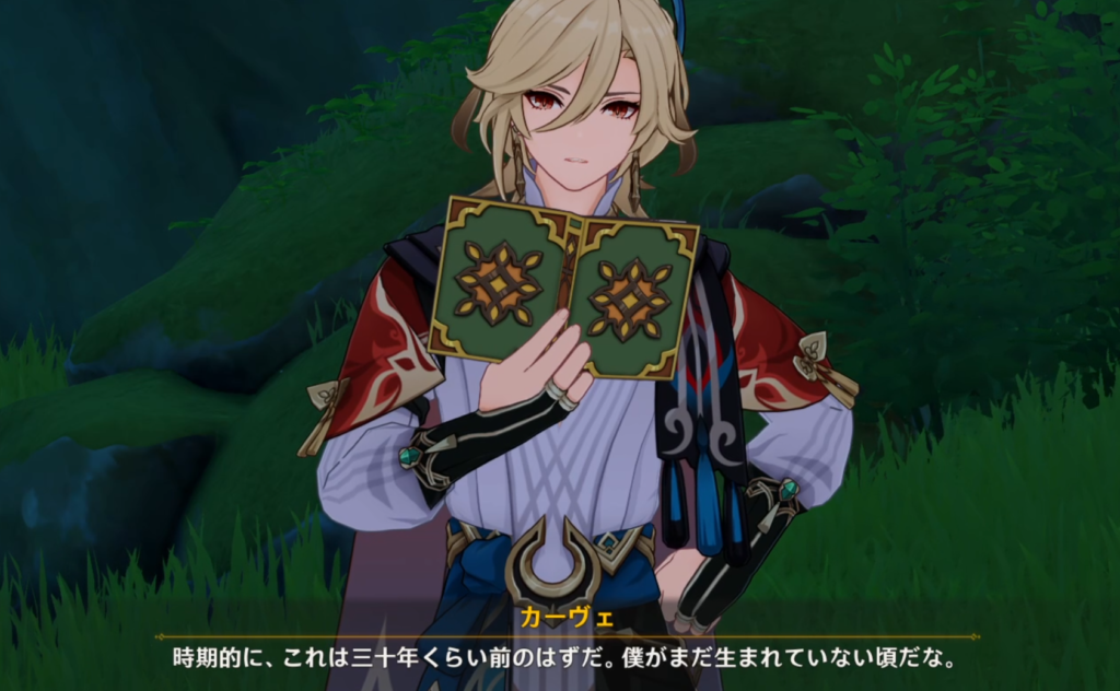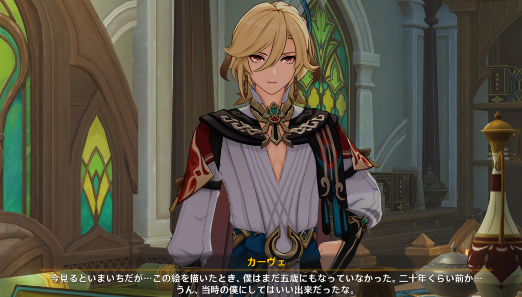 カーヴェは自身のデートイベント内で「5歳になっていないころに描いた絵が20年以上前*」「30年前に母が絵を描いた時に生まれていなかった」*と説明しているため、20代後半(25~29歳)であることが分かっています。