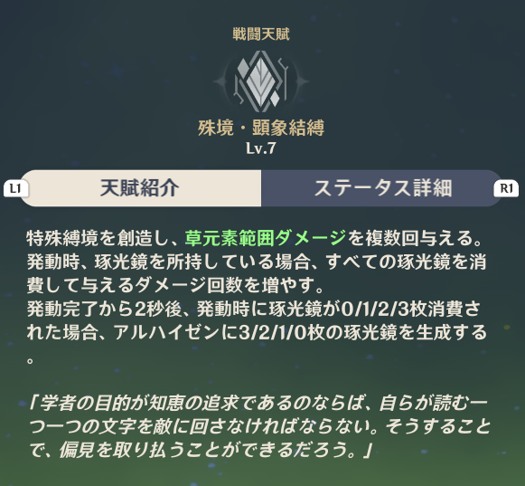 アルハイゼンの天賦名はどれも理論や演算に関する内容になっています。